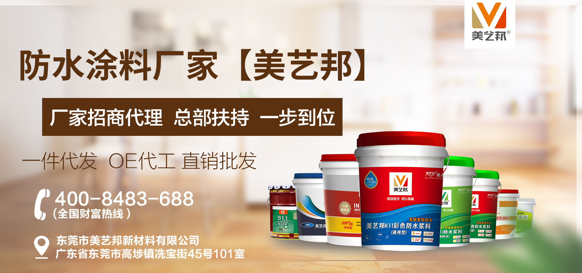 東莞市美藝邦新材料有限公司,是一家建筑防水行業集研發、設計、生產、銷售于一體的高新技術企業。基于東莞生產基地,開展全國建筑輔材加盟招商代理批發業務。 我司采用國內外先進的科學技術的同時,緊跟國際發展趨勢及結合國內市場特點,自主研發出健康環保型產品,其中包含防水涂料(K11彩色通用型防水涂料、K12彩色柔韌型防水涂料、JS聚合物防水涂料等等),瓷磚背膠(加強型瓷磚背膠、大理石瓷磚背膠、速干型瓷磚背...